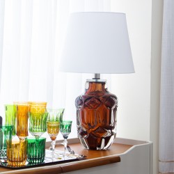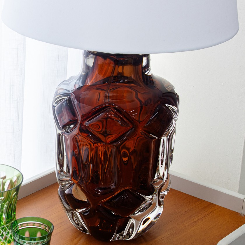 O abajur Barcelona de cristal murano é robusto e marcante, traz em sua base um trabalho manual cheio de detalhes feito por verdadeiros artistas. Imponente e sofisticado, traga a beleza da iluminação baixa com requinte dos cristais.