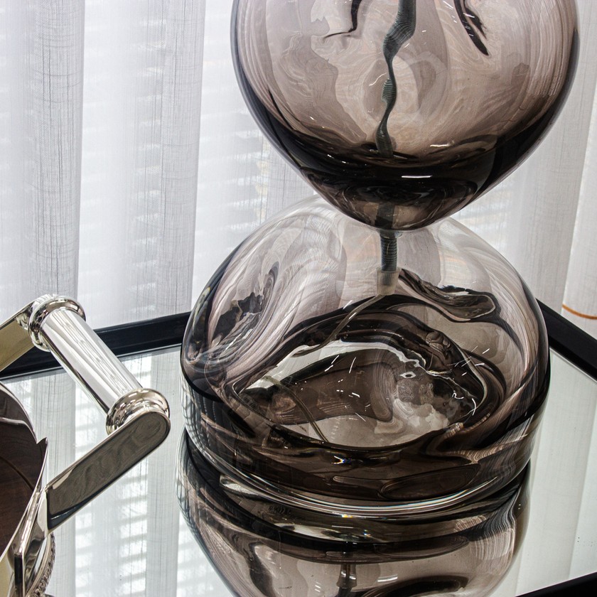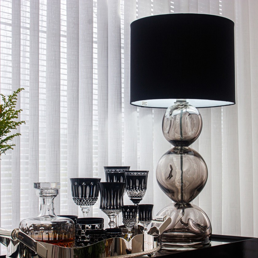 Abajur com base em cristal de murano, tamanho grande, produzido artesanalmente à mão, traz sofisticação e luxo para o seu ambiente. O modelo Organic tem um design moderno e atemporal, com formato alongado e esferas de diferentes tamanhos, fácil de compor o seu décor.