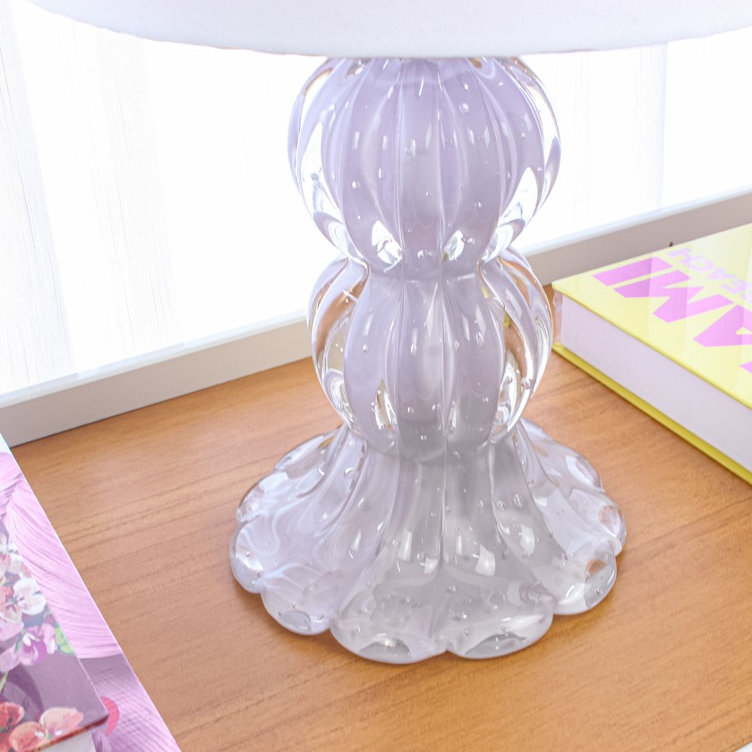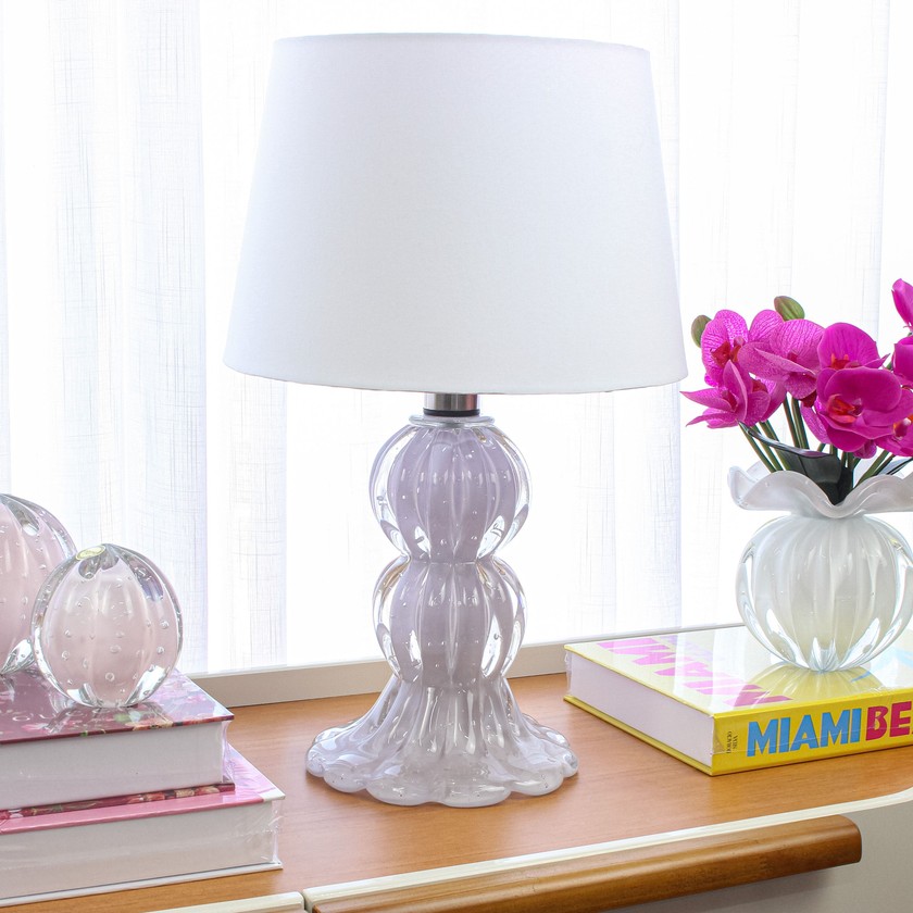 Abajur com base em cristal de murano, tamanho pequeno, produzido artesanalmente à mão, traz sofisticação e luxo para o seu ambiente. O modelo Siena tem um design clássico e atemporal, fácil de compor o seu décor.