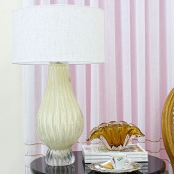 Abajur com base em cristal de murano, tamanho médio, produzido artesanalmente à mão, traz sofisticação e luxo para o seu ambiente. O modelo Villette tem um design clássico e atemporal, fácil de compor o seu décor.