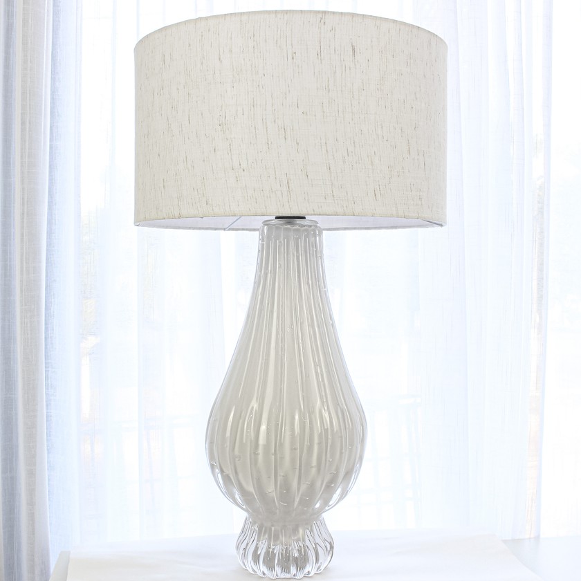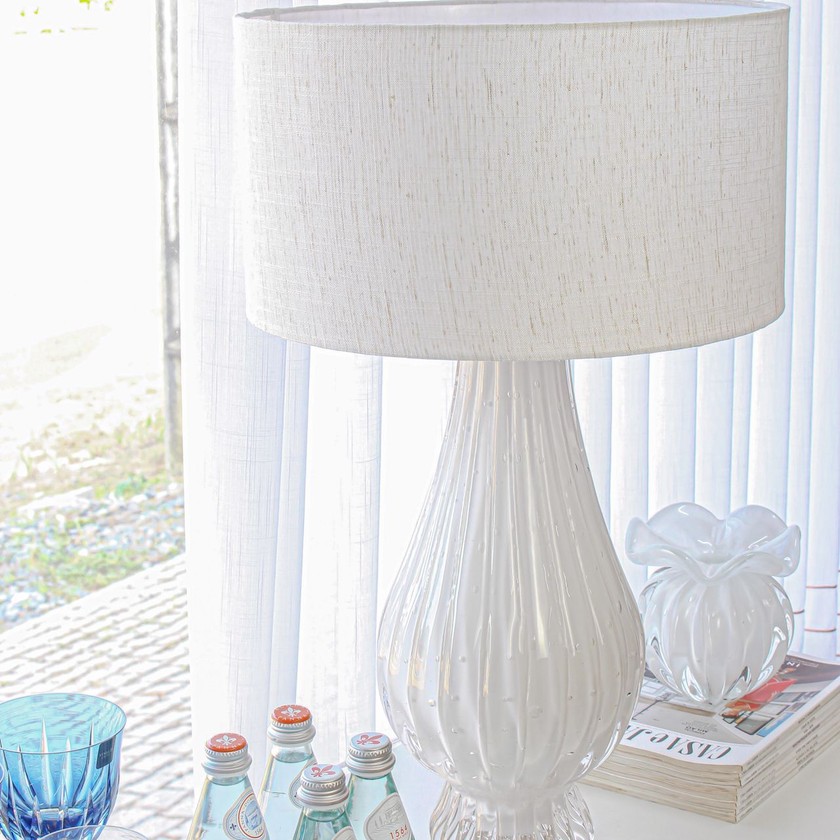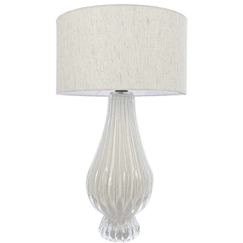 Abajur com base em cristal de murano, tamanho médio, produzido artesanalmente à mão, traz sofisticação e luxo para o seu ambiente. O modelo Villette tem um design clássico e atemporal, fácil de compor o seu décor.