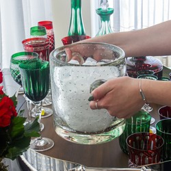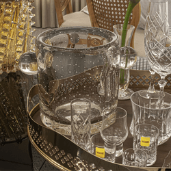 Moderno e charmoso, o balde de gelo em cristal de murano, feito artesanalmente a mão por verdadeiros artistas, com pegadores laterais, facilitando o manuseio, e capacidade de 2L. Modelo ideal para compor a sua bandeja bar, ou nas suas recepções mantendo o frescor da sua bebida. Componha o seu ambiente com delicadeza e suavidade. Eleve seu ambiente com a beleza e requinte dos cristais.