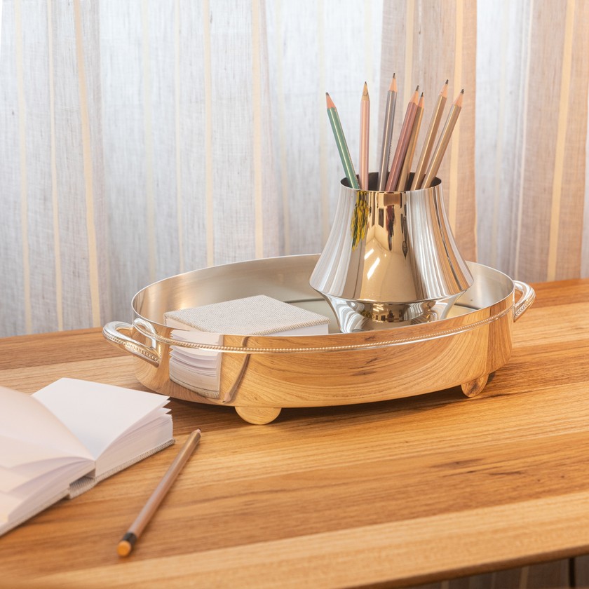 Uma bandeja moderna e elegante. Perfeita para compor ambientes com design e personalidade. Ideal para montar aquela bandeja bar com taças e acessórios e deixar o seu espaço super charmoso. As bandejas St. James recebe banho de prata previamente endurecida e abrilhantada, que garante maior durabilidade e facilidade na manutenção.
