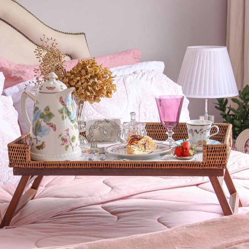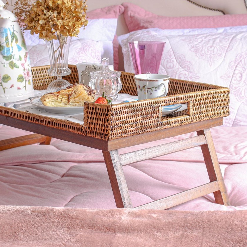 A Bandeja Amora possui um perfeito acabamento e um belo designer, toda em rattan e suporte de madeira natural feita artesanalmente à mão, ela traz o acolhimento e conforto do natural para o seu dia. Ideal para preparar aquela bandeja e se deliciar com um bom café/chá durante na cama. Decore e sirva com muito charme.