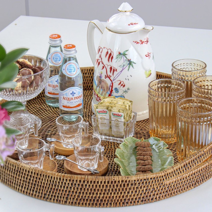 Peças feitas a mão, as fibras naturais ganham formas e é dona de uma beleza única. A Rattan traz uma nobreza para o estilo mais rustico e natural, hoje sendo essencial para a organização e decoração, além de ser uma peça bem pratica e muito útil para bem servir, não prejudica o meio ambiente por ter origem natural. As Peças podem ter tonalidades diferentes pois é um produto natural e artesanal.