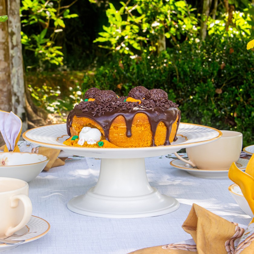 Material de Alta Qualidade: Construída em cerâmica robusta, proporcionando uma base sólida e durável que suporta diferentes tamanhos de bolos, tortas e doces.