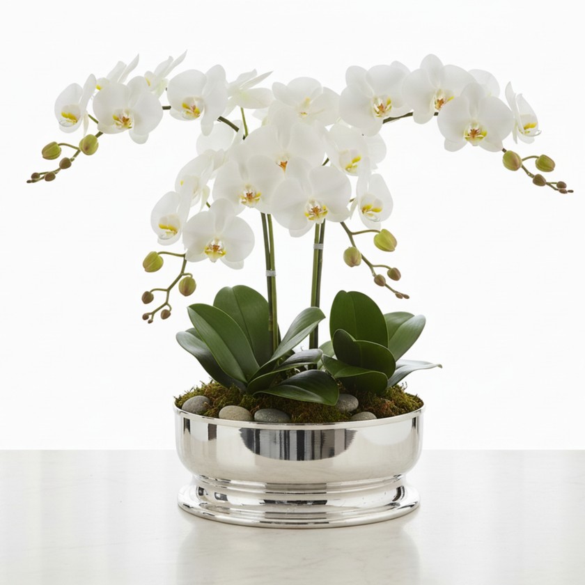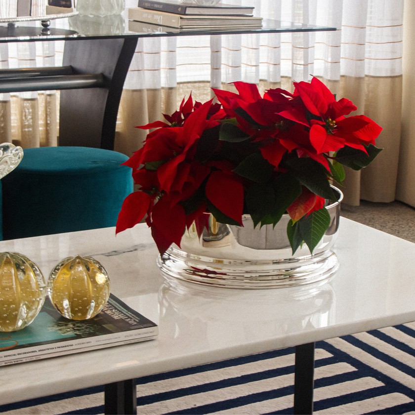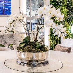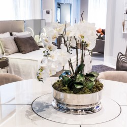 Deslumbrante e moderno, o centro de mesa Silhouette banhado a prata no aço 18/10 inoxidável. Designe atemporál, com estilo moderno e liso, ideal para compor o seu decorar com arranjos florais, trazendo elegância ao seu ambiente.