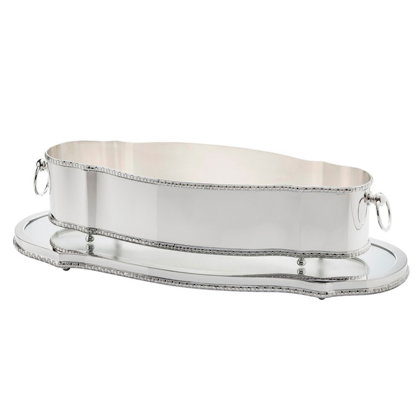 O Centro de Mesa em Prata recebe banho de prata previamente abrilhantada e endurecida, garantindo maior durabilidade e facilidade na manutenção.