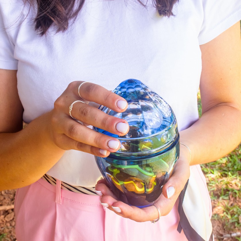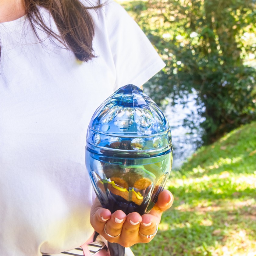 Compoteira Egg de Cristal Lapidado Azul Claro