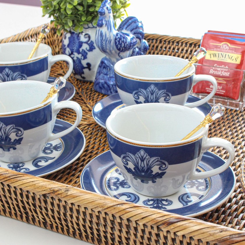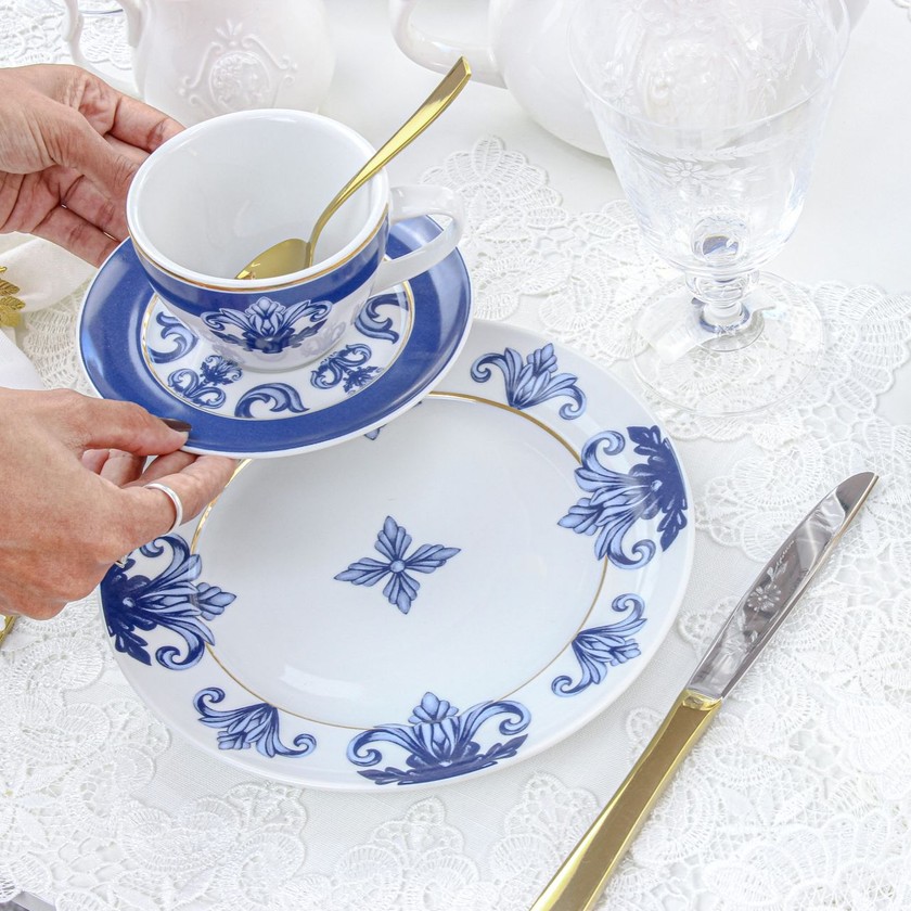 A xícara e pires com filete em Ouro reflete a nobreza da porcelana branca em alta qualidade e resistência e com belíssimo acabamento que deixará sua mesa com um belo design, valorizando cada momento. A Porto alia o processo artesanal à tecnologia, trazendo visual marcante nas peças, resultado de um minucioso trabalho digital que ganha vida nas mãos experientes de quem as fabricam. Uma belíssima inspiração, um jeito simples e ao mesmo tempo sofisticado para compor uma mesa.