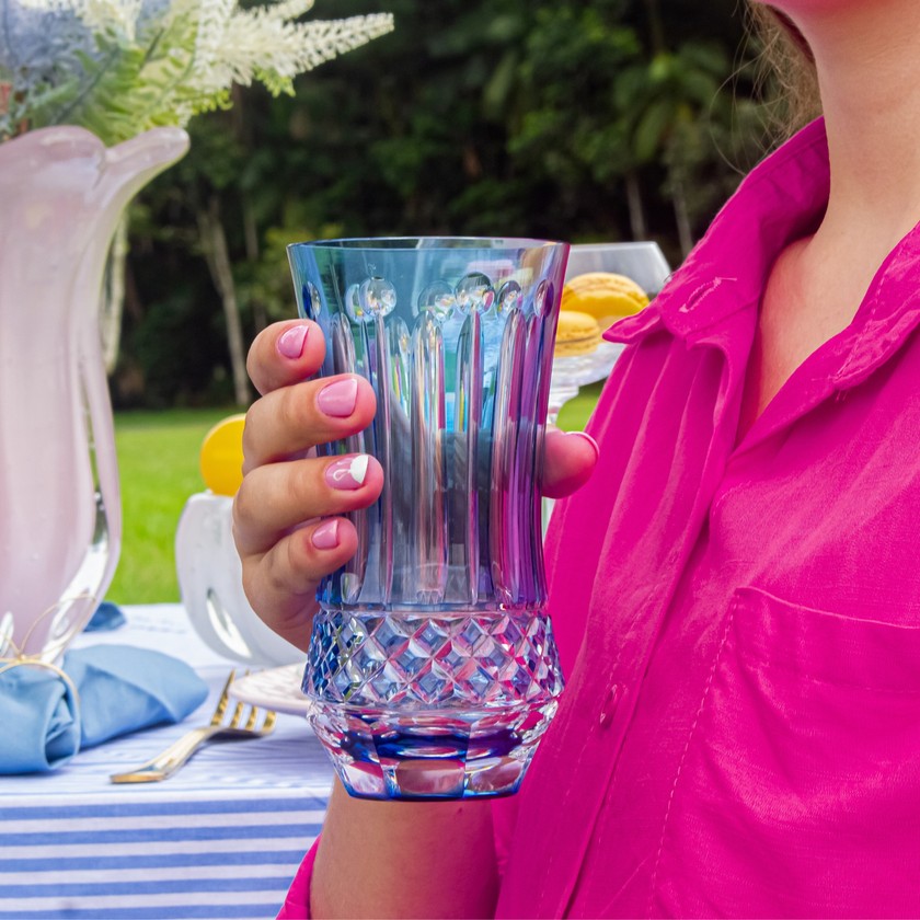O copo long drink lapidado 69 possui cristal 24% de chumbo que garante brilho, transparência e pureza. Com design moderno e sofisticado, peça feita artesanalmente a sopro e lapidada a mão, disponível em cores exclusivas derivadas da tecnica overlay. Transforme o seu servir e eleve a sua decoração com estas joias.