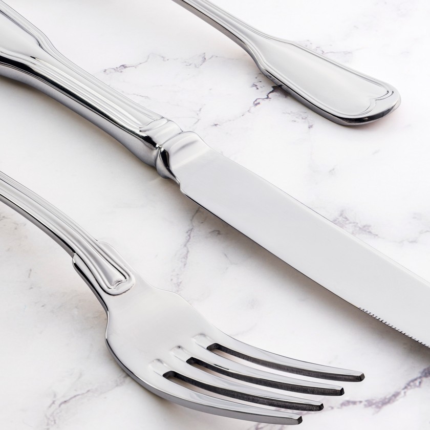 O Faqueiro St. James 101 Peças banhado em prata é uma combinação perfeita de design, resistência e qualidade. Atende aos mais elevados padrões mundiais. É produzido em aço 18/10, o que há de melhor em qualidade, garatindo um acabamento impecável e excelente apresentação. As facas possuem lâminas temperadas, que mantêm o corte por mais tempo e não causam riscos nas superfícies dos pratos, conservando-os sempre bonitos. São peças que te proporciona uma presença marcante, dá um toque de classe e requinte às ocasiões formais, é indispensável para abrilhantar sua mesa.