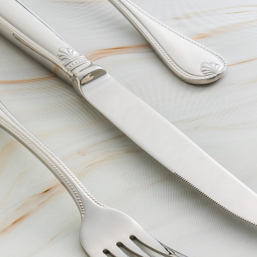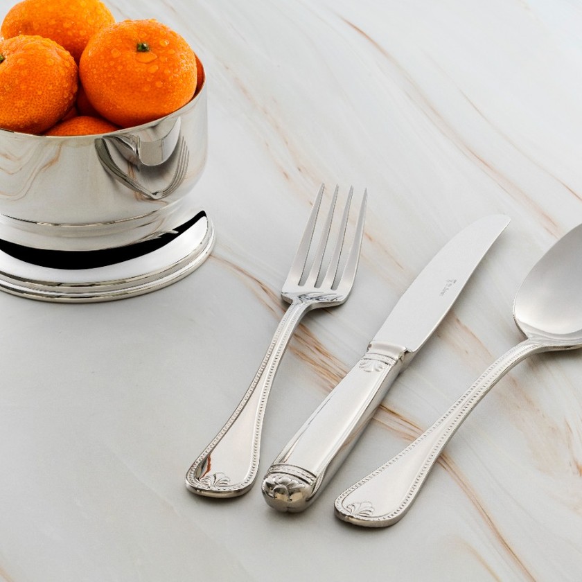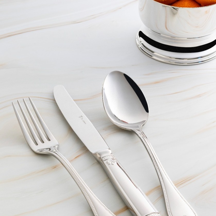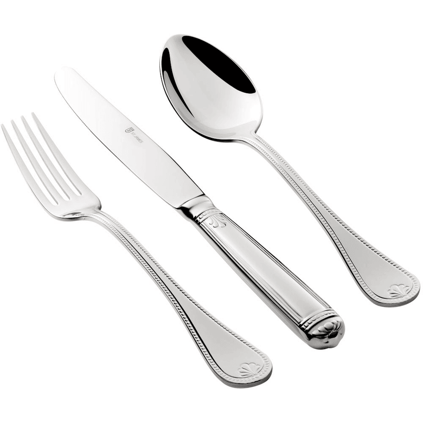 O Faqueiro St. James 101 Peças banhado em prata é uma combinação perfeita de design, resistência e qualidade. Atende aos mais elevados padrões mundiais. É produzido em aço 18/10, o que há de melhor em qualidade, garatindo um acabamento impecável e excelente apresentação. As facas possuem lâminas temperadas, que mantêm o corte por mais tempo e não causam riscos nas superfícies dos pratos, conservando-os sempre bonitos. São peças que te proporciona uma presença marcante, dá um toque de classe e requinte às ocasiões formais, é indispensável para abrilhantar sua mesa.