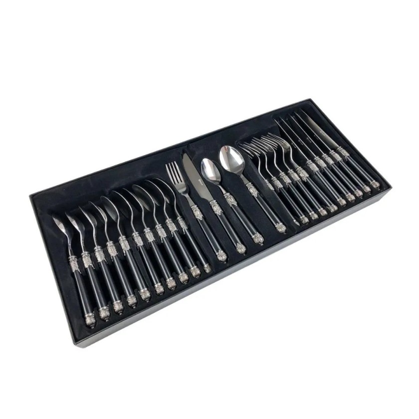 Medidas: 16cm(Faca); 16cm(Garfo); 12cm(Colher de sopa); 15cm(Colher de sobremesa)