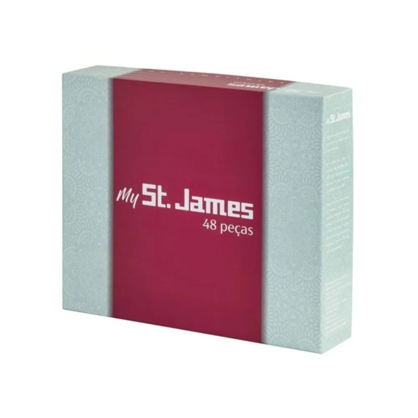 O Faqueiro St. James 48 Peças Prata é uma combinação perfeita de design, resistência e qualidade. Atende aos mais elevados padrões mundiais. É produzido em aço 18/10, o que há de melhor em qualidade, recebe banho de prata previamente abrilhantada e endurecida, garantindo maior durabilidade e facilidade na manutenção, possuindo um acabamento impecável e excelente apresentação. As facas possuem lâminas temperadas, que mantêm o corte por mais tempo e não causam riscos nas superfícies dos pratos, conservando-os sempre bonitos. São peças que te proporciona uma presença marcante, dá um toque de classe e requinte às ocasiões formais, é indispensável para abrilhantar sua mesa.