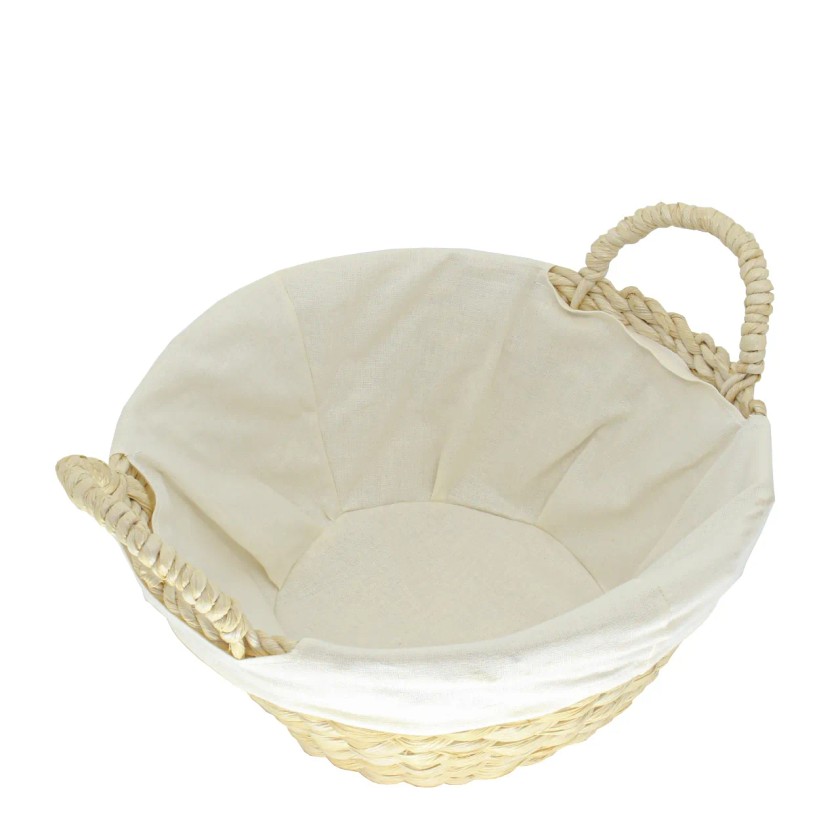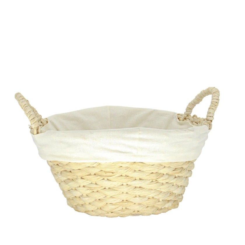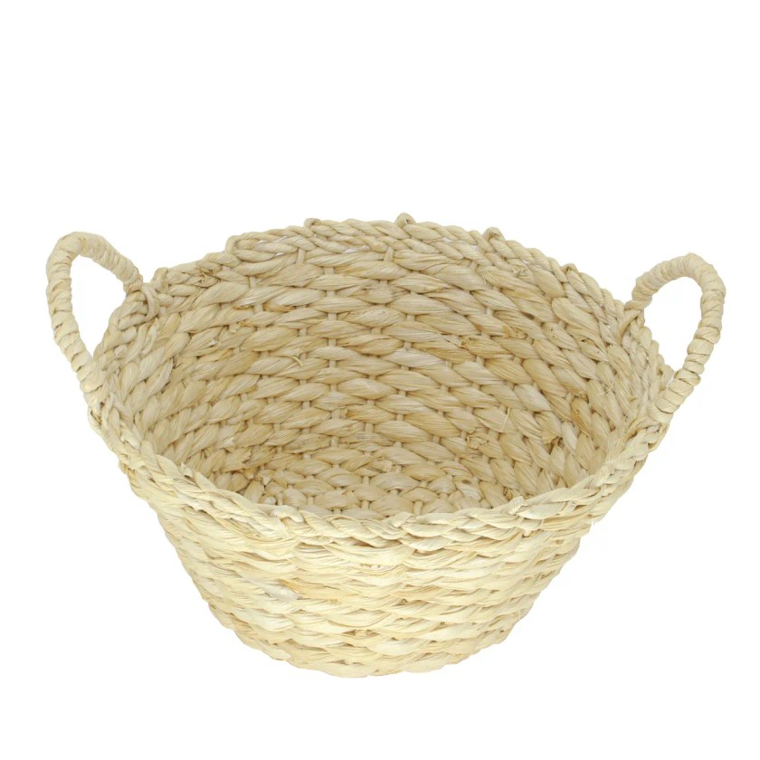 Feito em fibra natural e com medidas de 14 cm de altura, 27 cm de largura e 27 cm de comprimento.