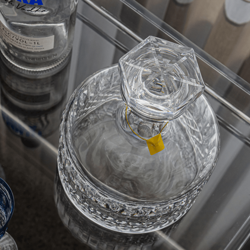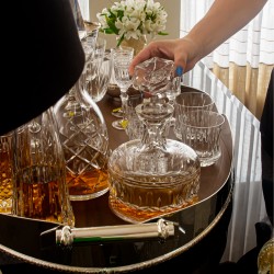 Moderna e sofisticada, a garrafa para whisky de cristal puro com 24% de chumbo, garantindo o brilho, transparência e pureza. Feita artesanalmente a sopro e lapidada a mão, com capacidade de 1200ML. Sirva sua bebida favorita com a elegância do cristal.
