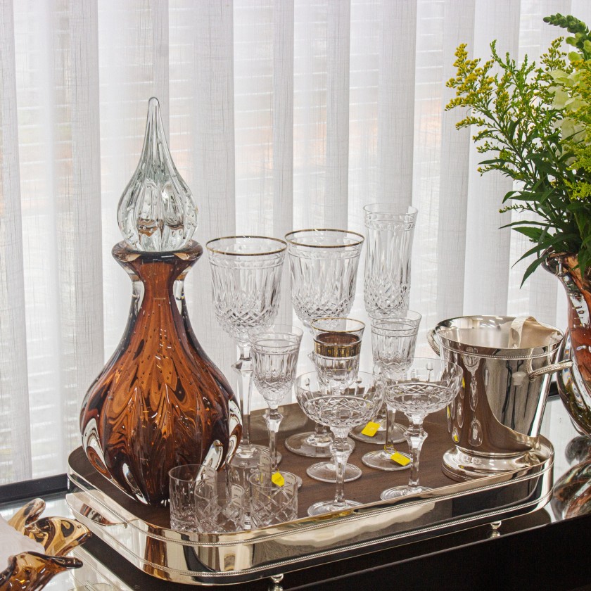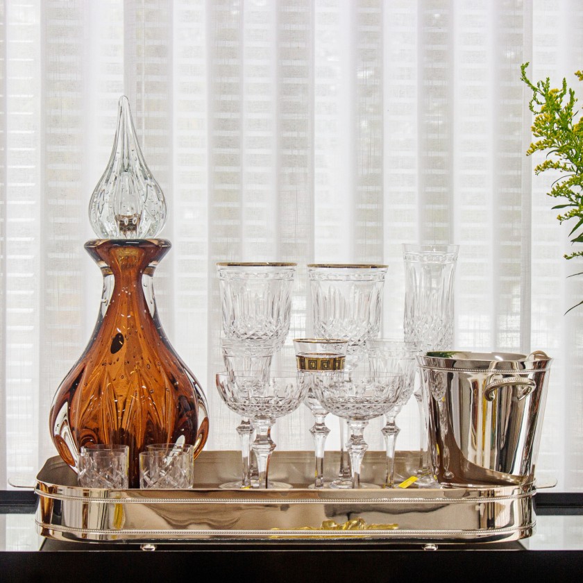 Licoreira em cristal de murano, Loures produzido artesanalmente à mão, traz sofisticação e luxo para o seu ambiente. Tendo um design clássico e atemporal, fácil de compor o seu décor.