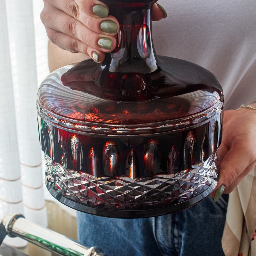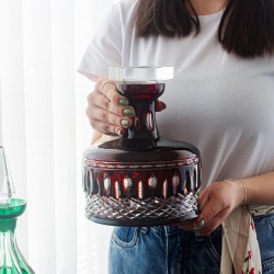 Moderna e sofisticada, a garrafa para whisky de cristal puro com 24% de chumbo, garantindo o brilho, transparência e pureza. Feita artesanalmente a sopro e lapidada a mão, com capacidade de 1200ML. Sirva sua bebida favorita com a elegância do cristal.