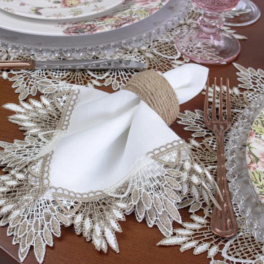 Insira os dados básicos do produto, selecione sua categoria e crie A linha de jogos americanos e guardanapos em renda guipir compõe a mesa com elegância e graciosidade. São peças artesanais ricas em detalhes da renda guipir, aflorando aconchego e romantismo.