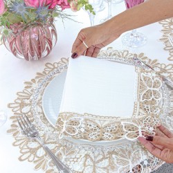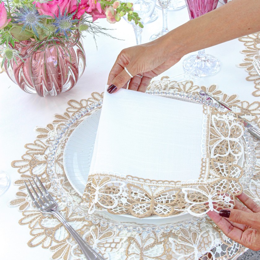 Os guardanapos com acabamento em renda guipir são os nossos best-sellers! Traz para a mesa um ar delicado e atemporal com a nobreza e requinte da renda. Se encante com os detalhes de cada modelo.