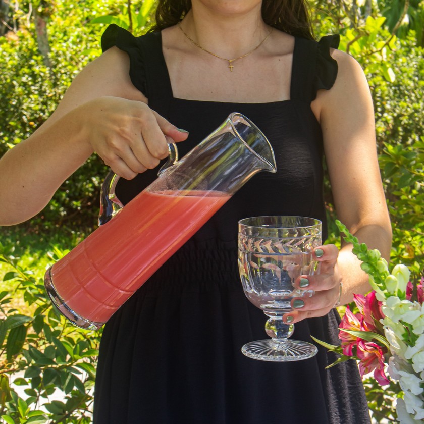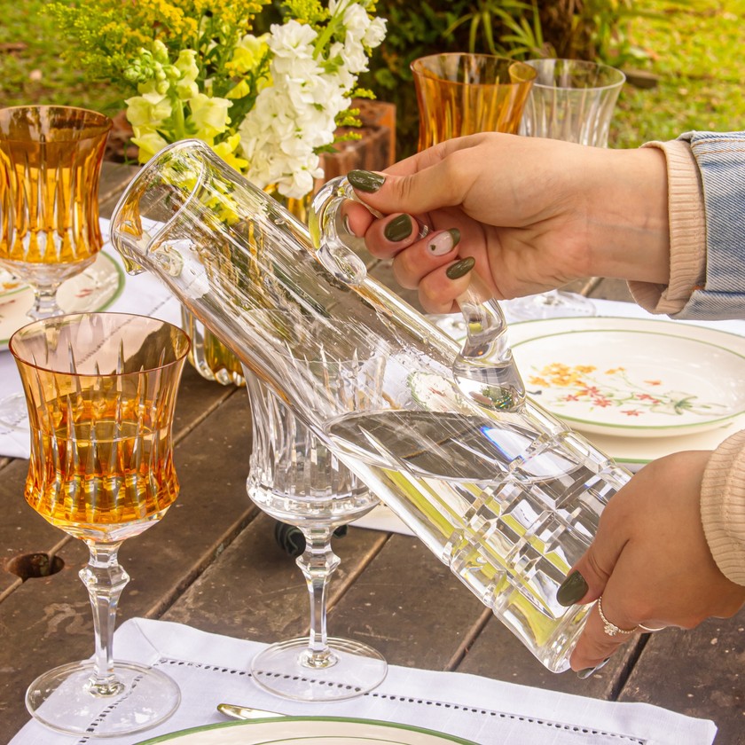 Jarra em cristal 24Pbo com lapidação artesanal, que confere brilho, sonoridade e timbre inigualáveis.