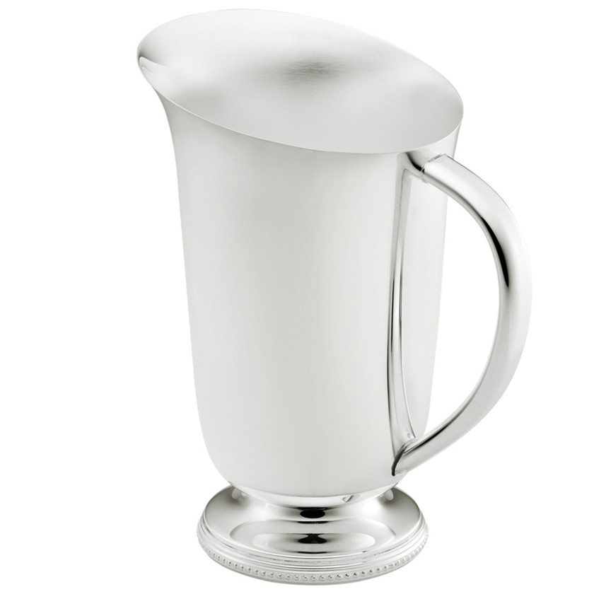 A Jarra Bloom Prata possui design belo e delicado, com detalhes pérola artesanalmente gravados em sua borda e pé. Ideal para servir bebidas leves com requinte e elegância.