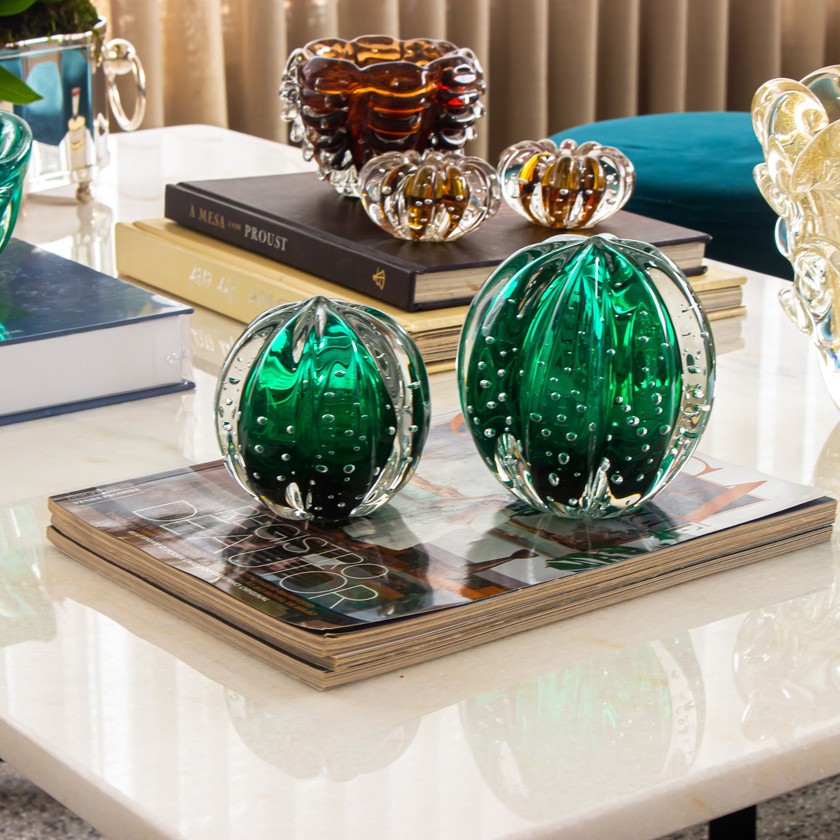 O toque final no seu décor, as esferas em cristal de Murano traz o que tem de mais clássico e sofisticado. Elas são ideais para compor com livros em mesas de centro, laterais ou estantes.
