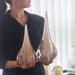 Os cristais de Murano levam sofisticação e exclusividade em cada peça. Feito a mão, uma a uma, a peça em cristal nobre leva a técnica trazida da ilha de Murano na cidade de Veneza – Itália, o método se traduz em qualidade, exclusividade, beleza e brilho único, alcançados apenas por artista em seu processo artesanal.