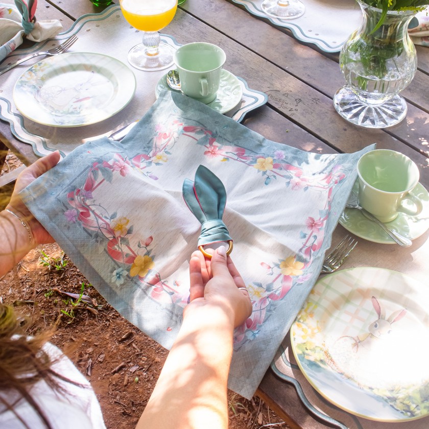 Deixe que nossos guardanapos e anéis de guardanapo de Páscoa façam parte do seu banquete, promovendo momentos de alegria e partilha, quando corações se renovam e histórias são contadas ao redor da mesa. Transforme a tradicional refeição pascal numa obra de arte, onde cada detalhe é um testamento à beleza da celebração e à alegria do reencontro.