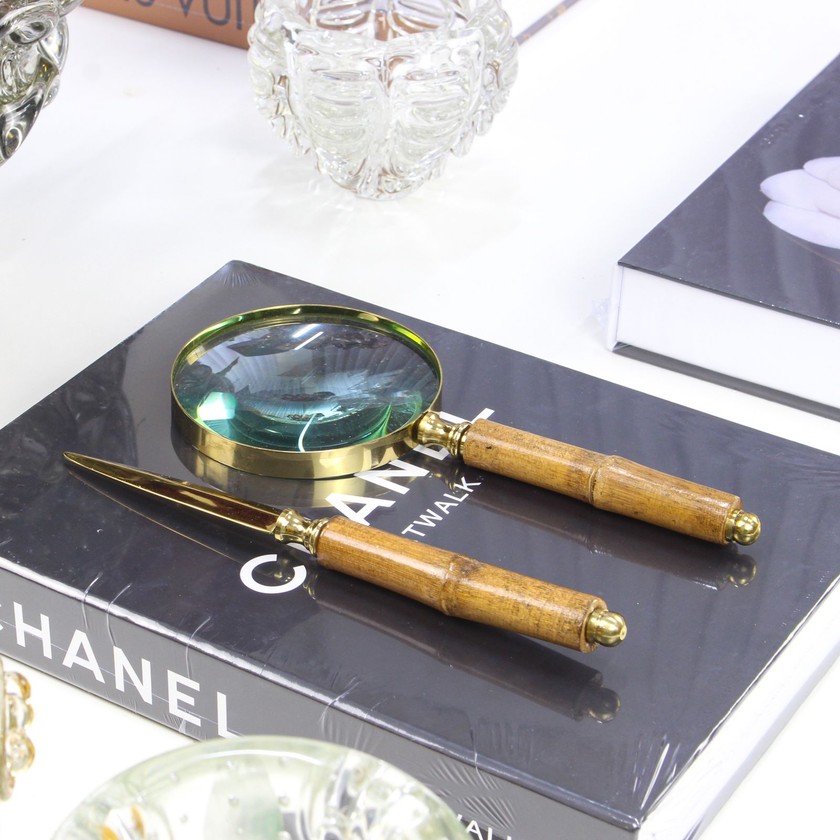 Abridores de carta e Lupa são peças muito usadas para decoração de inúmeros ambientes, pois trazem um ar de modernidade e intelectualidade ao local. Podendo ser usado tanto como peça decoração ou para sua função. A liberdade que você poderá ter para usar sua imaginação e fazer desses itens verdadeiras peças coringa dentro da linha decorativa.