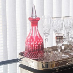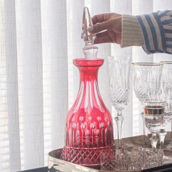Deslumbrante e moderna. A garrafa de licor possui cristal 24% de chumbo que garante brilho, transparência e pureza. Peça feita artesanalmente a sopro e lapidada a mão, com uma tampa pessada para vedar e preservar sua bebida. Disponível em cores exclusivas, derivadas da técnica overlay. Transforme o seu servir e eleve a sua decoração com estas joias.