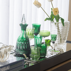 Deslumbrante e moderna. A garrafa de licor possui cristal 24% de chumbo que garante brilho, transparência e pureza. Peça feita artesanalmente a sopro e lapidada a mão, com uma tampa pessada para vedar e preservar sua bebida. Disponível em cores exclusivas, derivadas da técnica overlay. Transforme o seu servir e eleve a sua decoração com estas joias.