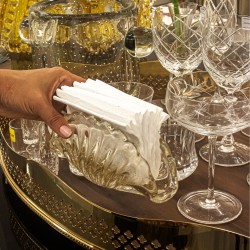 Elegante e atemporal, o porta guardanapo em cristal de murano, é feito artesanalmente a mão por verdadeiros artistas, com detalhamentos ao longo da peça. Modelo ideal para compor sua bandeja bar ou em suas produções de mesa posta, compondo seu ambiente com delicadeza e suavidade. Eleve seu ambiente com a beleza e requinte dos cristais.