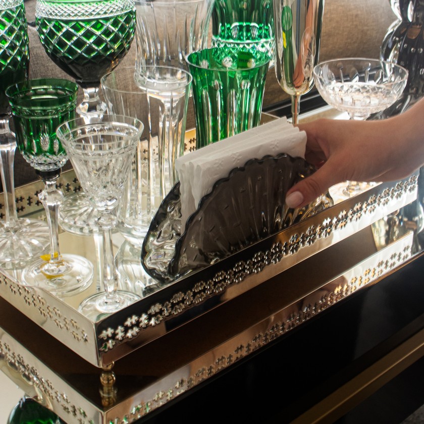 Elegante e atemporal, o porta guardanapo em cristal de murano, é feito artesanalmente a mão por verdadeiros artistas, com detalhamentos ao longo da peça. Modelo ideal para compor sua bandeja bar ou em suas produções de mesa posta, compondo seu ambiente com delicadeza e suavidade. Eleve seu ambiente com a beleza e requinte dos cristais.