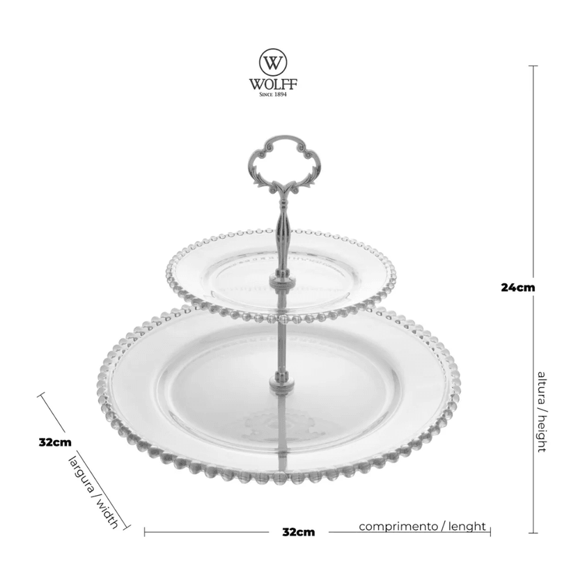 Feito com materiais de qualidade e acabamento refinado, o prato para doce duplo é mais do que um suporte para sobremesas - é uma obra-prima da arte de servir. Sua superfície suave e brilhante proporciona o cenário perfeito para destacar os detalhes de cada doce, desde bolos delicadamente decorados até tortas exuberantemente recheadas.