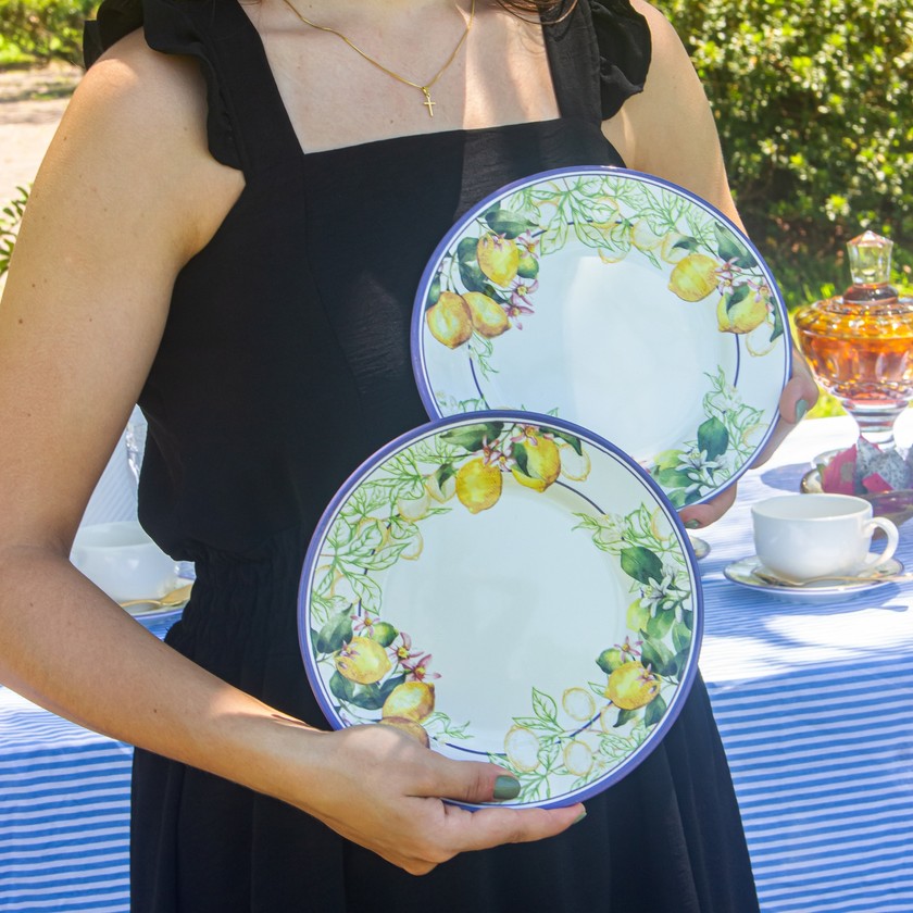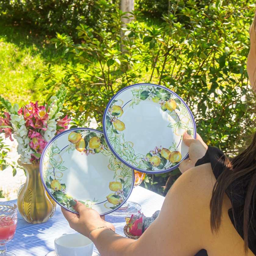 Imagine um prato de sobremesa que captura a essência ensolarada dos campos de limão siciliano, transformando suas refeições finais em uma experiência poética. Este prato, delicado e refinado, é uma ode à simplicidade vibrante dos limões, com um design que evoca a frescura e a alegria do Mediterrâneo.