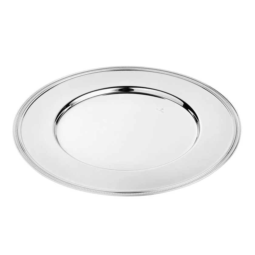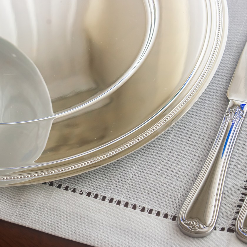 Deslumbrante e clássico, o sousplat Bloom banhado a prata no aço 18/10 inoxidável. Ideal para compor sua mesa posta, e trazer a elegância da prata ao seu servir. Com detalhe pérola nas laterais.