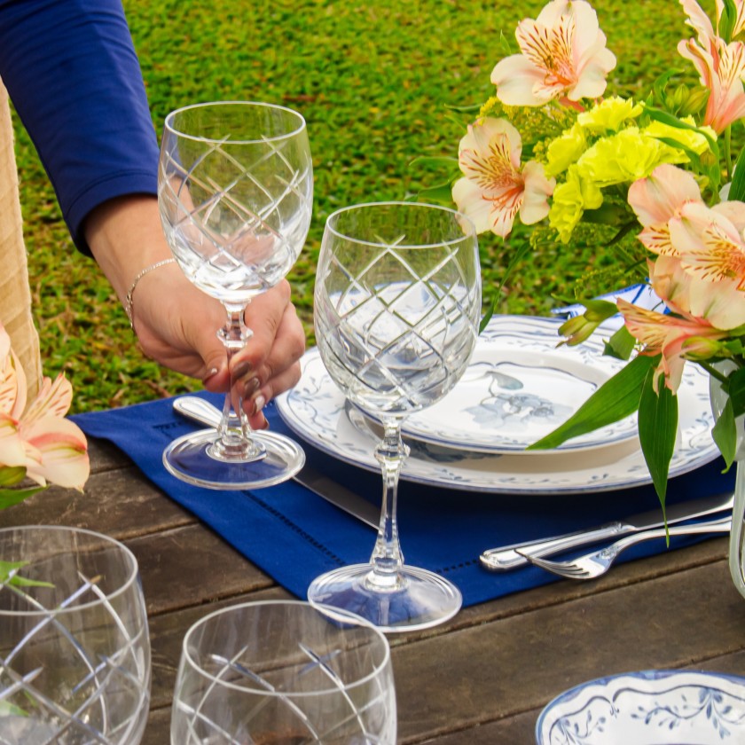Elegante e sofisticada a taça de água possui cristal 24% de chumbo que garante brilho, transparência e pureza. Feita artesanalmente a sopro e lapidada a mão por verdadeiros artistas,taça com bojo arredondado e generoso, e haste lapidada, capacidade de 400ML. Sirva com elegância.