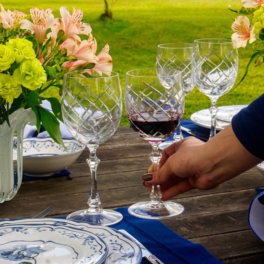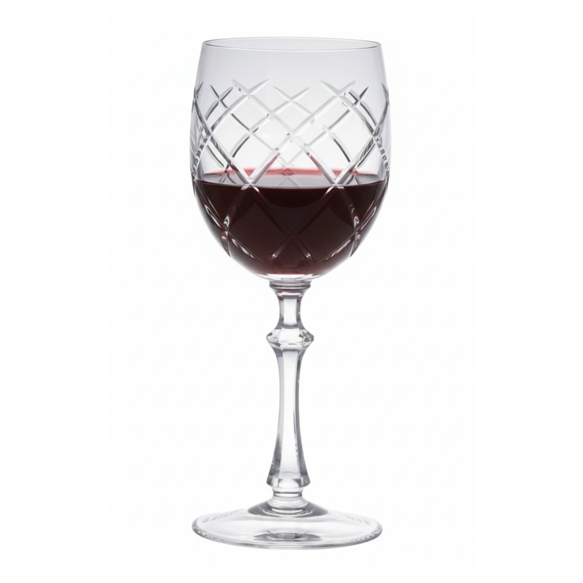 Elegante e sofisticada a taça de vinho possui cristal 24% de chumbo que garante brilho, transparência e pureza. Feita artesanalmente a sopro e lapidada a mão por verdadeiros artistas,taça com bojo arredondado e generoso, e haste lapidada, capacidade de 330ML. Sirva com elegância.