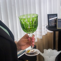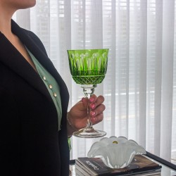 A taça para vinho lapidado 69 de cristal puro com 24% de chumbo que garante o brilho, pureza e a transparência da peça. É feita artesanalmente a sopro, lapidada a mão, um bojo arredondado e generoso com capacidade de 300ML, em um design elegante e clássico. Disponível em cores exclusivas adquirididas com a técnica overlay. Transforme o seu servir e eleve a sua decoração com estas joias.