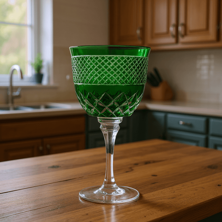 taça cristal agua lapidado 78 verde escuro