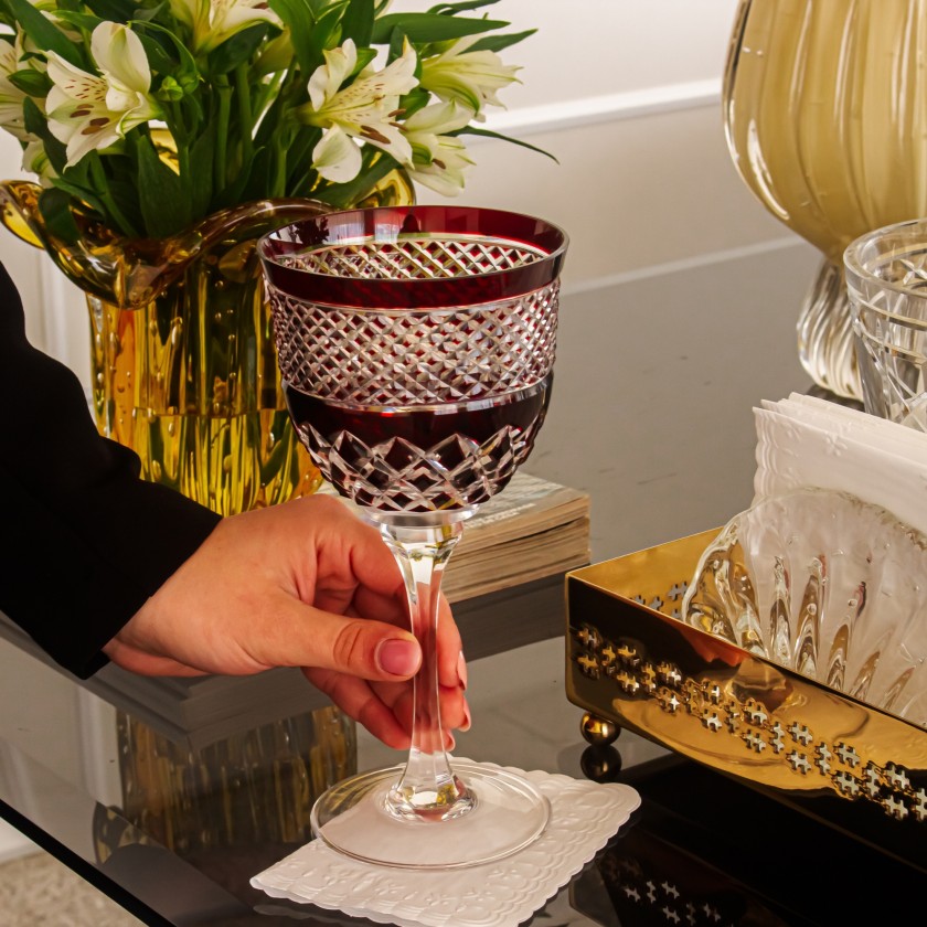 As taças de cristal são a escolha perfeita para os verdadeiros apreciadores de bebidas em geral. Fabricadas com cristal de altíssima qualidade, essas peças combinam elegância, funcionalidade e precisão técnica para transformar momentos de degustação em experiências sensoriais completas.. Ela transmite na transparência do cristal mais pureza, com 24% de chumpo oferecendo mais brilho e qualidade. Produzida no sopro e a lapidada à mão, é uma peça 100% artesanal, que traz ao modelo traços atemporais, proporcionando ao cristal ainda mais nobreza e exclusividade em cada peça. A Linha Vivaldi by Mozart Crystais possui o selo ouro, mas com lapidação mais simples e padrão de qualidade mais aberto, tolerando detalhes minimos no cristal.