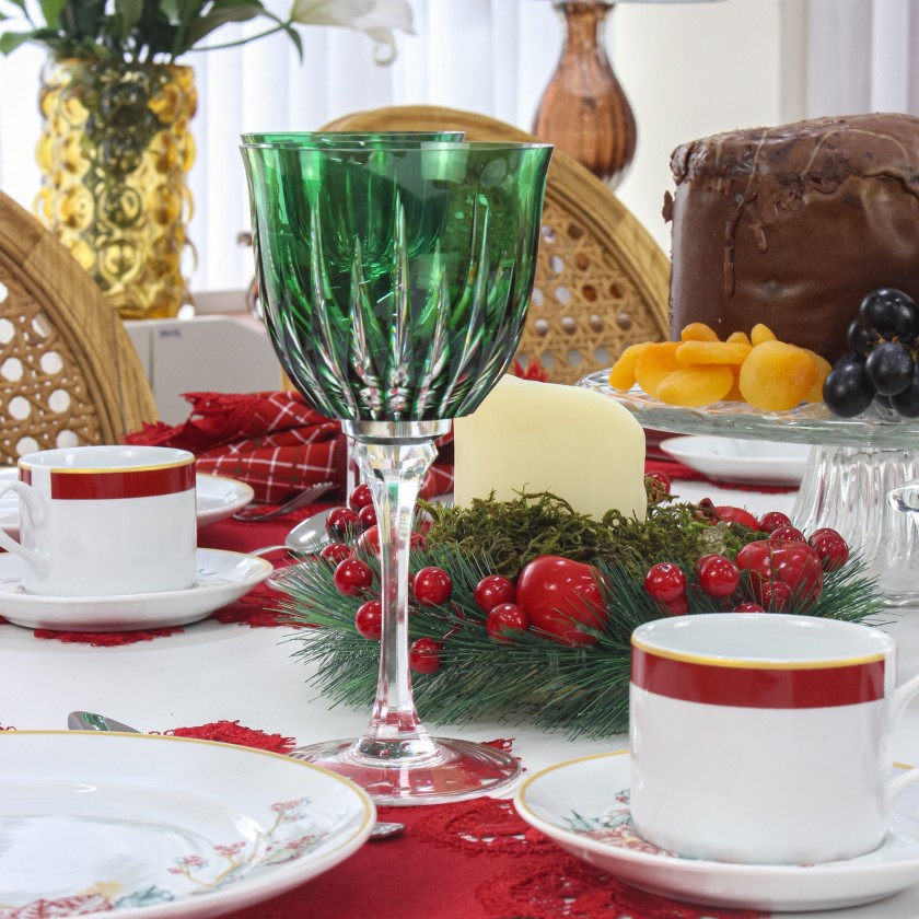 Taça de Cristal Lapidado 66 P/Vinho Tinto Verde Escuro