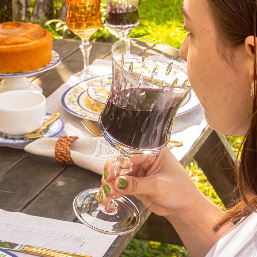A taça de cristal para vinho tinto modelo flauta possuem formato moderno e imponente, de haste lisa e bojo mais reto. Ela transmite na transparência do cristal mais pureza, com 24% de chumpo oferecendo mais brilho e qualidade. Produzida no sopro e a lapidada à mão, é uma peça 100% artesanal, que traz ao modelo traços atemporais, proporcionando ao cristal ainda mais nobreza e exclusividade em cada peça. A Linha Vivaldi by Mozart Crystais possui o selo ouro, mas com lapidação mais simples e padrão de qualidade mais aberto, tolerando detalhes minimos no cristal.