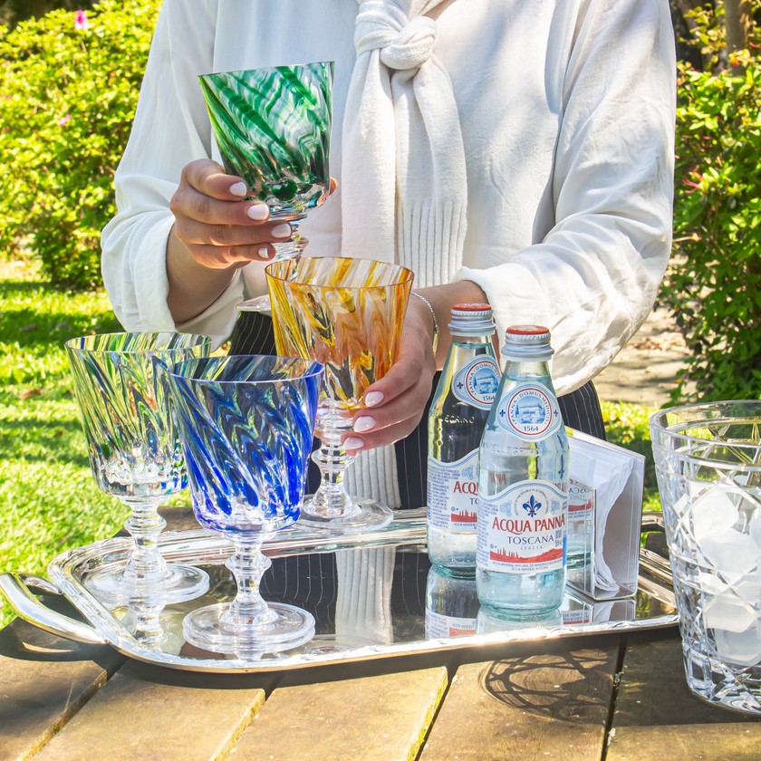 A taça para água Murano Collors tem capacidade de 390ML, é uma peça de cristal puro com 24% de chumbo que garante o brilho, pureza e a transparência da peça. Feita artesanalmente a sopro, detém da técnica overlay que traz cores exclusivas ao cristal, com design moderno e divertido.