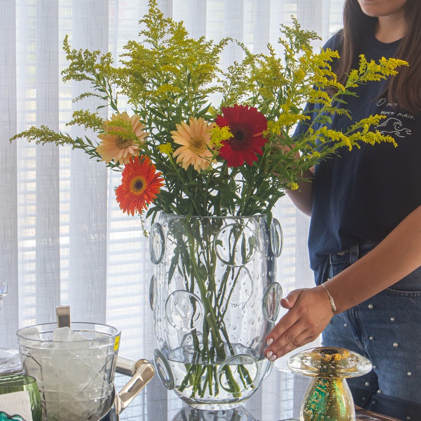 O vaso em Cristal de Murano do tamanho ideal para decorar a sua mesa de centro ou aparador, também podendo ser usado para deixar uma apresentação mais sofisticada e única.