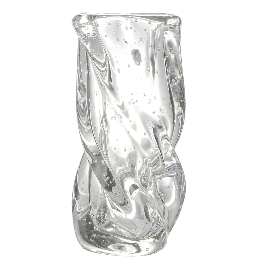 Vaso de murano com formato único e retorcido e aparência moderna, ideal para arranjos florais e composição de mesas postas