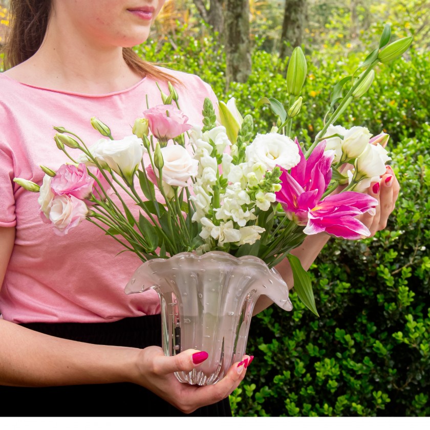 A sofisticação do vaso Hallein em cristal de Murano é ideal decorar bandejas, lavabos, mesas de centro, lateral... Seu modelo tem formas delicadas e mais alongada, perfeito para usar sozinho, mas também como porta pinceis, escovas... ou um lindo arranjo de flores para transformar o seu décor.