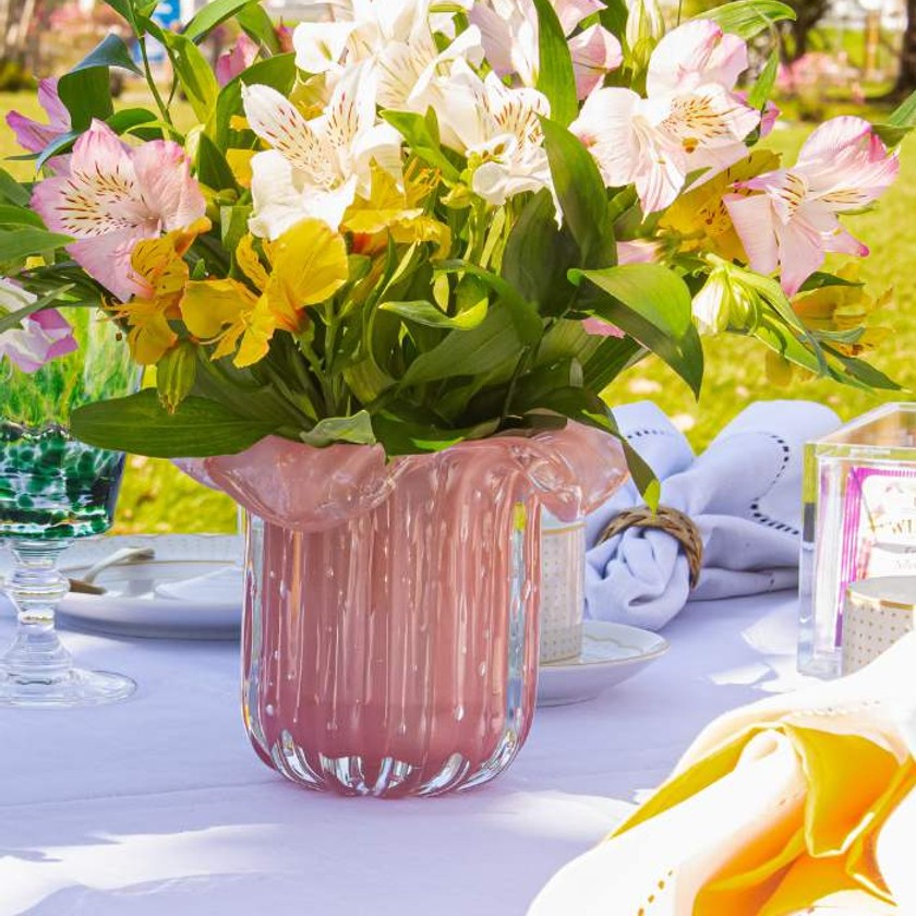 O vaso Salvador em cristal de Murano traz o que tem de mais clássico e sofisticado, com formato de trouxinha, além de decorar seu ambiente, ele pode ser facilmete usado para organização da sua mesa, cabeceira e lavabos.